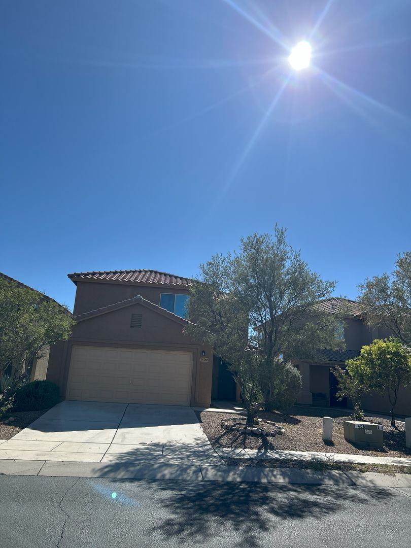 Welcome to this stunning two-story home located in the beautiful Green Valley, AZ. This home boasts three spacious bedrooms, 2.5 bathrooms, and a bonus room that can be tailored to your needs. The kitchen is equipped with modern amenities including a microwave, dishwasher, electric stove, and refrigerator. The home also features a washer/dryer for your convenience. The living spaces are adorned with wood flooring, while the bedrooms are carpeted for added comfort. The home is also equipped with ceiling fans and an alarm system (fees apply) for your comfort and security. The double car garage provides ample space for your vehicles or additional storage. Enjoy the outdoors in the walled backyard or under the covered patio, perfect for entertaining or relaxing. Consider use of the hot tub! Please note, this home maintains a no smoking policy. This home is a perfect blend of comfort and modern living. Credit scores @ 640. Non refundable fee of $200 for post clean/maintenance